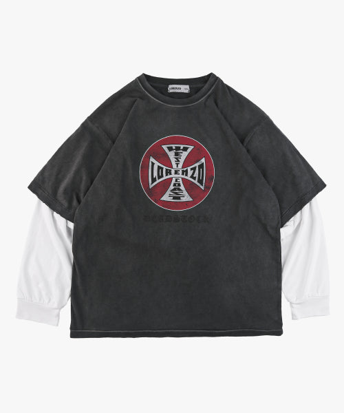 ダメージブリーチ ロングスリーブ - ブラック: ヴィンテージ感あふれるスタイリッシュなレイヤードルックで個性を表現しましょう。快適さとスタイルを同時に実現!