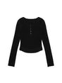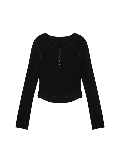 アップリケ ロゴ ヘンリーネック スリムトップ ブラック