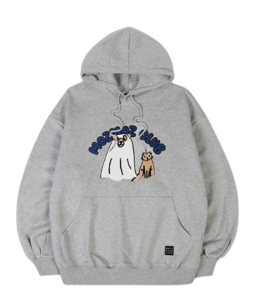 ブークレ刺繍 インビジブルパピー オーバーサイズ フリース パーカー グレー