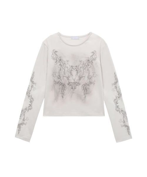 ロココオーナメントTシャツ(グレー):上品なロココ柄で洗練されたスタイルを完成させます。快適なフィット感と高級感のあるデザインが特徴です。
