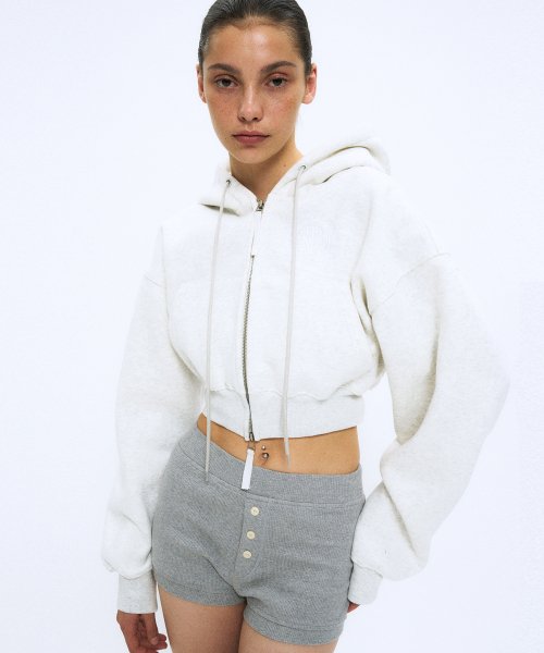 クラシック ロゴ クロップ パーカー_メランジ: スタイリッシュなクロップド デザインと快適なフィット感で毎日を特別なものにしましょう。