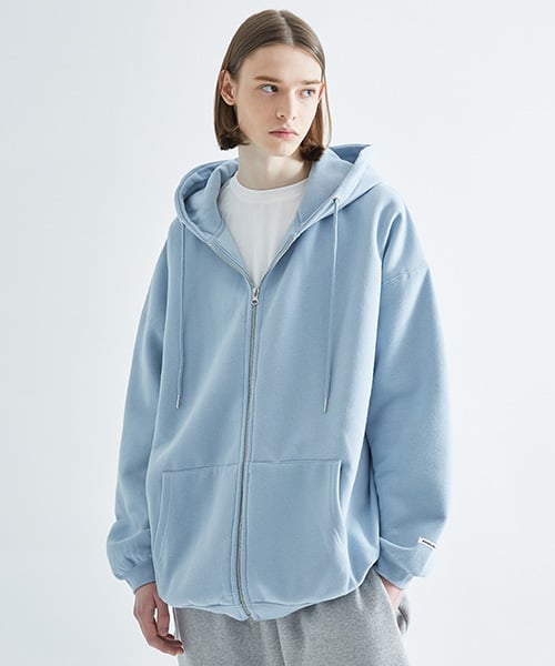 ピーチスキンオーバーサイズパーカージップアップMZT101[PASTELBLUE]:柔らかな質感とスタイリッシュなオーバーサイズフィットで快適さとスタイルを同時に体感!
