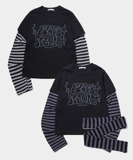 【ZIKU×PLACE】ストライプダブルレイヤーロングスリーブTシャツ&マフラーセット
