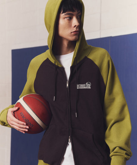 URBANDTYPE ホームボーイ ロゴ ラグラン カラーブロック パーカー_ジップアップ_オリーブ - サイズとレビュー | MUSINSA