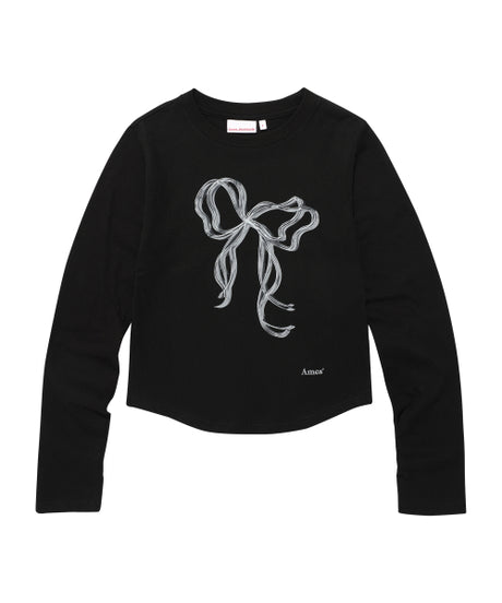 リボングラフィックロングスリーブTシャツ ブラック (AM2EFFT560A)