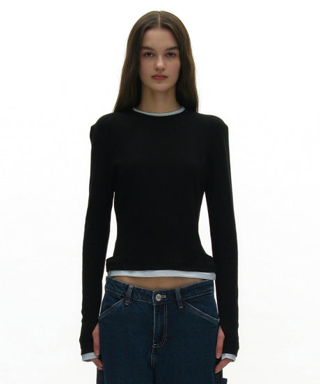 PARTIMENTO WOMEN PW ダブルレイヤー ロングスリーブ Tシャツ_ブラック - サイズとレビュー | MUSINSA