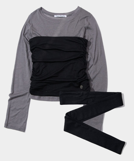 マフラーセット シャーリング ラウンドネック ストレッチ コントラストトップ ロングスリーブ Tシャツ [ブラック]