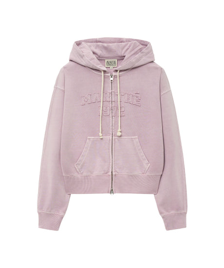 W ヴィンテージ ダイアップリケ ロゴ クロップ フーディー ジップアップ ダークピンク