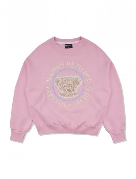 レディース クロップ ベア フレンズ 刺繍 スウェットシャツ ピンク (FCB3TS355W)