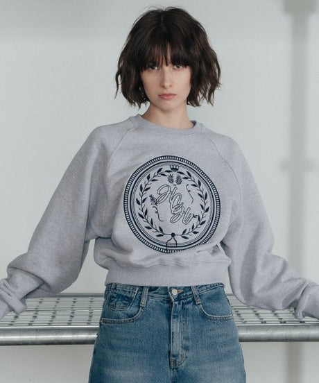 HCH ローレル クロップ スウェットシャツ_メランジ グレー
