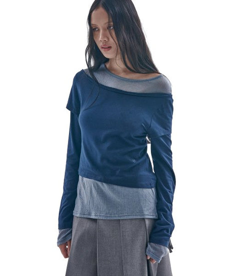 PLACE STUDIO シースルーダブルレイヤーロングスリーブTシャツ [ネイビー] - サイズとレビュー | MUSINSA