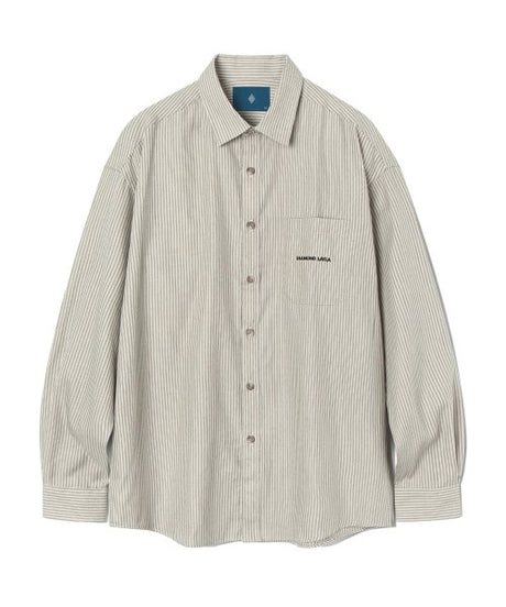ワンポケット刺繍オーバーサイズカラー半袖コットンシャツ[アイボリー]