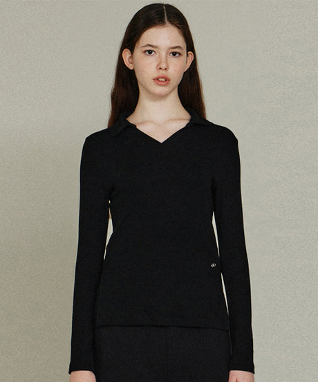 クルーネック ベーシック ロングスリーブ トップス_ブラック