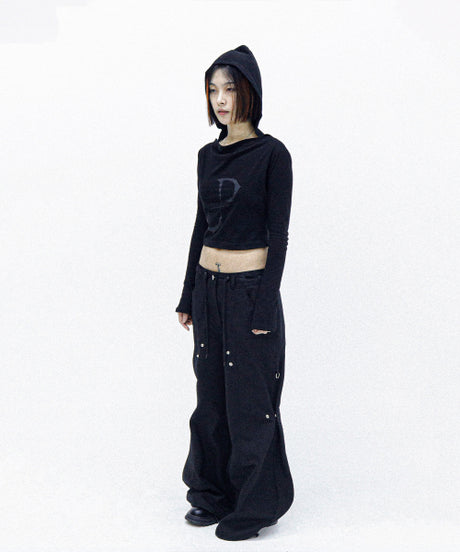 クラシックワッペンクロップパーカー(チャコール)_F24ZB061