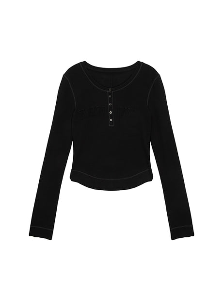 エンボ ハート リボン ベーシックフィット ロングスリーブ ホワイト