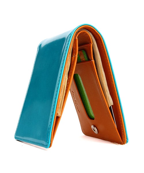 ペブル 隠しカードボタンウォレット [エメラルドブルー]