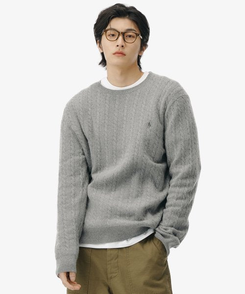 ケーブルニットウールコットンセーター - グレー: 柔らかいウールとコットンの完璧なブレンドで、快適さとスタイルを同時に体験してください。今すぐお試しください。