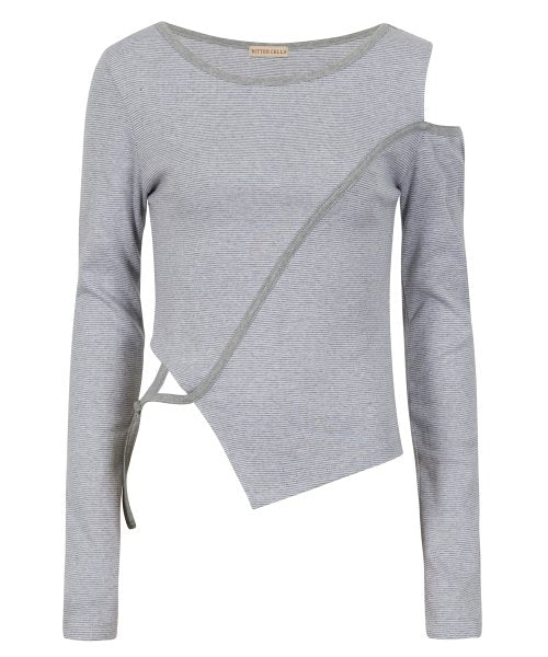 ルナ ストライプ ティー グレー: スタイリッシュな非対称デザインで洗練されたスタイルを完成させます。快適さとファッション性を同時に実現します。