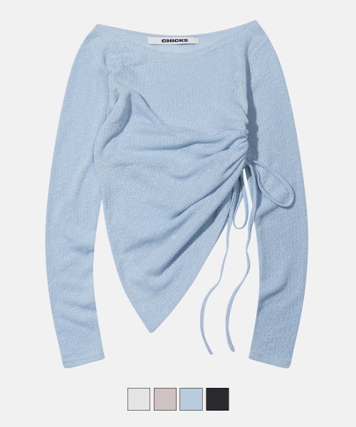 LTT サイド リボン ティー 4 色: シックなサイド タイ トップスでスタイルを高めましょう。4 つの美しい色からお選びいただけます。どんな場面にもぴったりです。
