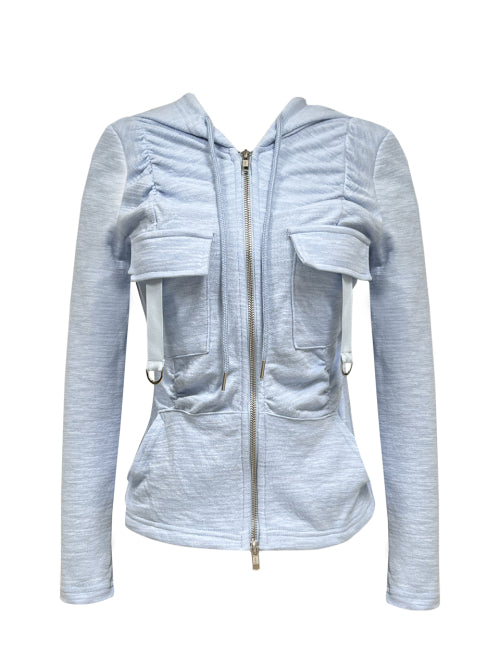 シャーリングカーゴフードジップアップブルー