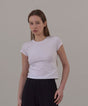 当社のホワイトのキャップスリーブ T シャツでスタイルをアップグレードしましょう。どんな場面にもぴったりです。柔らかく、シックで、多用途です。今すぐ手に入れましょう。