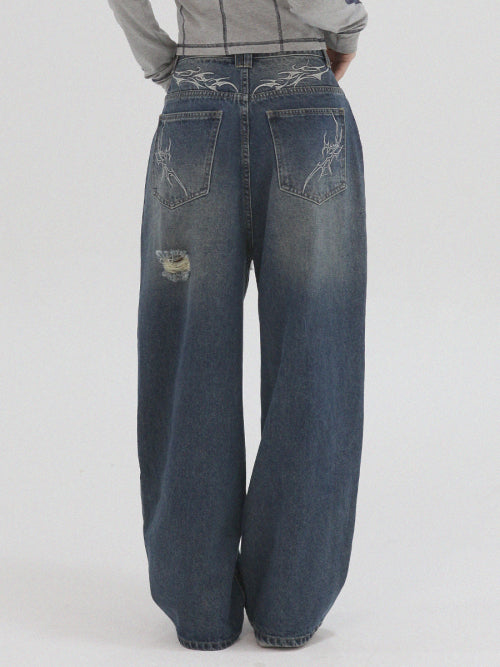 刺繍入りバルーンフィットデニムパンツでスタイルをアップグレードしましょう。ユニークな刺繍、ゆったりとしたフィット感、究極の快適さ。どんなカジュアルルックにもぴったりです。