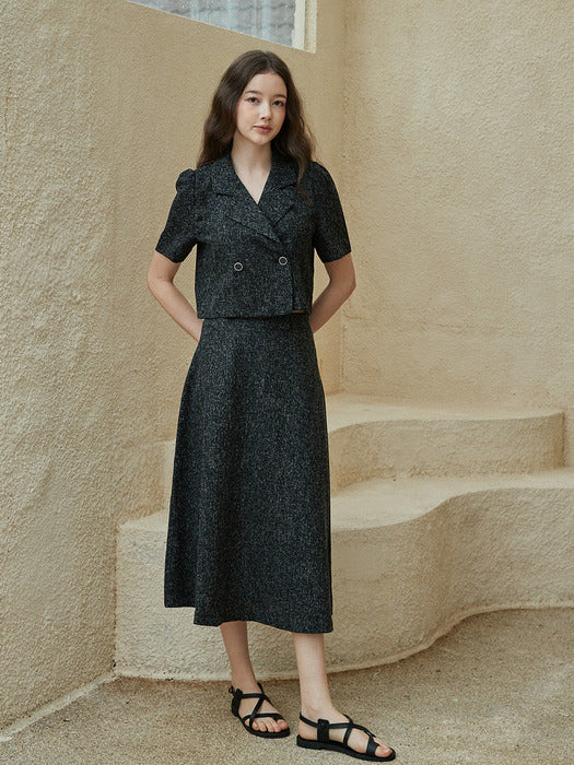 [SET] ツイードハーフジャケット+ツイードAラインロングスカート ブラック