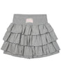 Kang Kang ミニスカートパンツ - グレー: スタイリッシュさと快適さを同時に実現! 柔らかい素材とフリルのディテールで、毎日の特別な装いを完成させます。