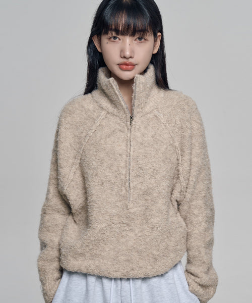 アイボリーのコリー ブークレ ハーフジップ ニットで、心地よくシックに過ごしましょう。どんな場面にもぴったりのこのニットは、暖かさとスタイルをエレガントな一枚で提供します。