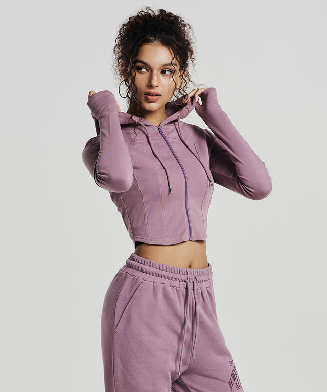 Elevate your style with the HEX Women's Round Crop Hoodie Zip-Up. Chic, comfy, and perfect for active or casual wear. Stay trendy effortlessly!