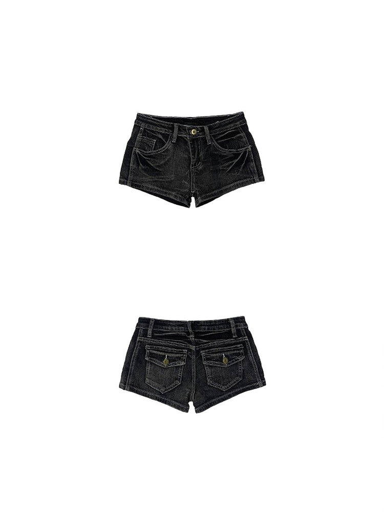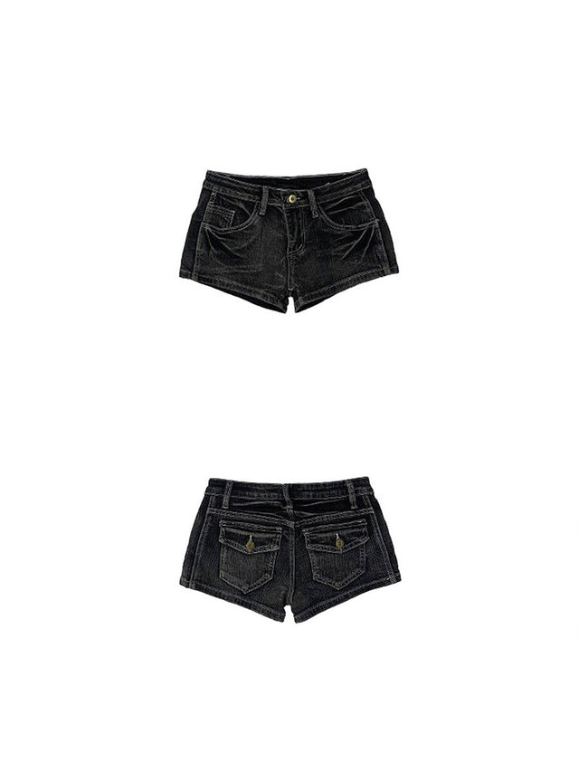 Elevate your summer style with Satomi Radio Crack glam denim shorts! Featuring a sleek black wash, they offer a chic, comfortable fit for any occasion.