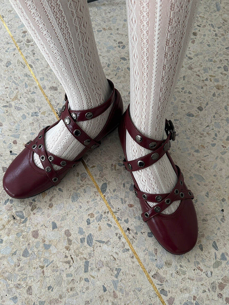 Step into style with the Satomi Radio Eyelet Strap Maryjane! Featuring chic eyelet straps and a rich burgundy hue, these shoes are perfect for any ensemble.