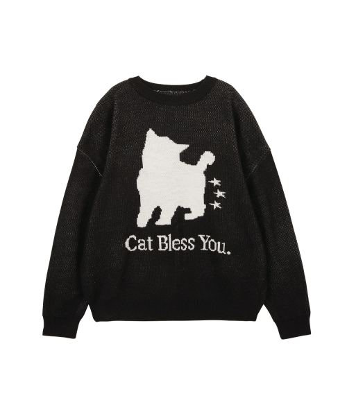 NO COLOR STAR CAT KNIT - BLACK: Cozy up in style with this playful cat design sweater. Perfect for any casual outing. Get yours now!