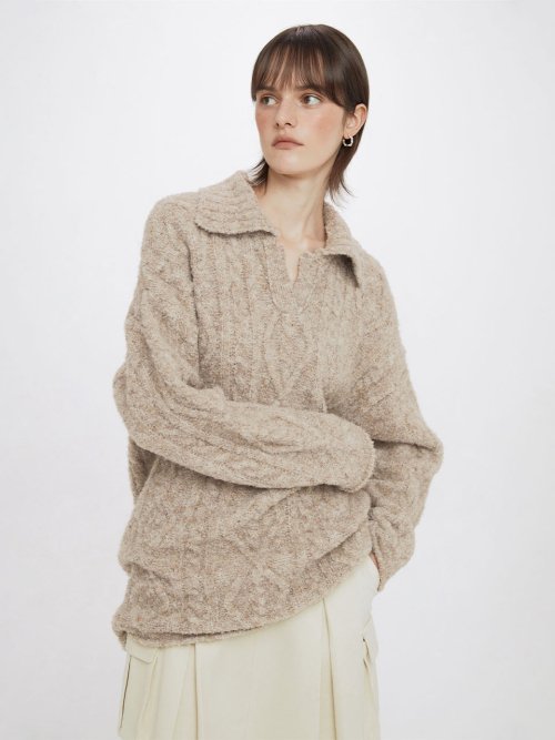 Cozy up in style with the Overfit Knit in Beige VK3WP173-91. Perfect for any occasion, this soft, chic sweater is your new wardrobe staple.