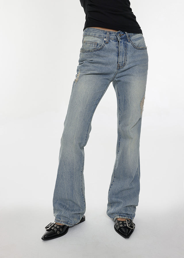 Black Up [MADE] Carrie Damage Bootcut Denim Pants