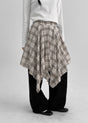 Black-Up [✨New Spring] Tirma Checkered Unbalanced Midi Skirt