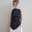 Elevate your wardrobe with our Drape See-Through Blouse. This elegant piece features a flowing silhouette and stylish belted detail for a chic look.