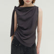 Elevate your wardrobe with this chic dark grey top. Featuring a draped design and a stylish shoulder tie, it combines comfort with modern elegance.